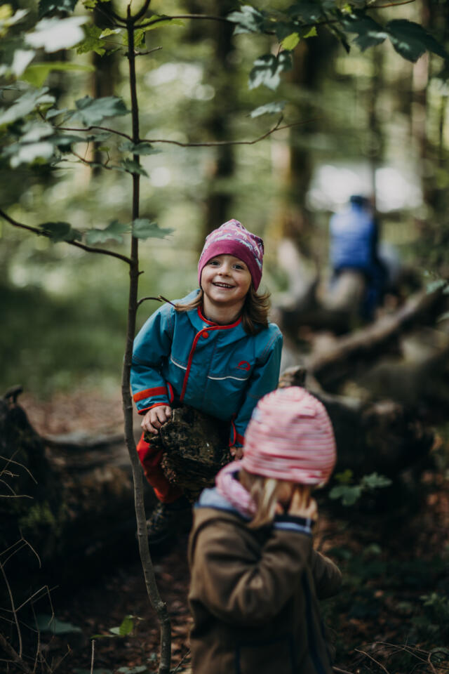 Die Kinder erleben die Natur und deren Gesetze am eigenen Leib. Sie spüren, wie die Bäume im Frühling "ihren Saft anstellen", sie erleben die verschwenderische Vielfalt des Sommers, sie baden im bunten, knisternden Herbstlaub und trotzen im Winter der Kälte. Diese Eindrücke prägen die Kinder sehr und machen sie stark: als Persönlichkeiten und verantwortungsbewusst für andere und ihre Umwelt.
